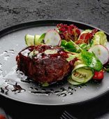 Стейк из говядины с соусом демиглас и белыми грибами